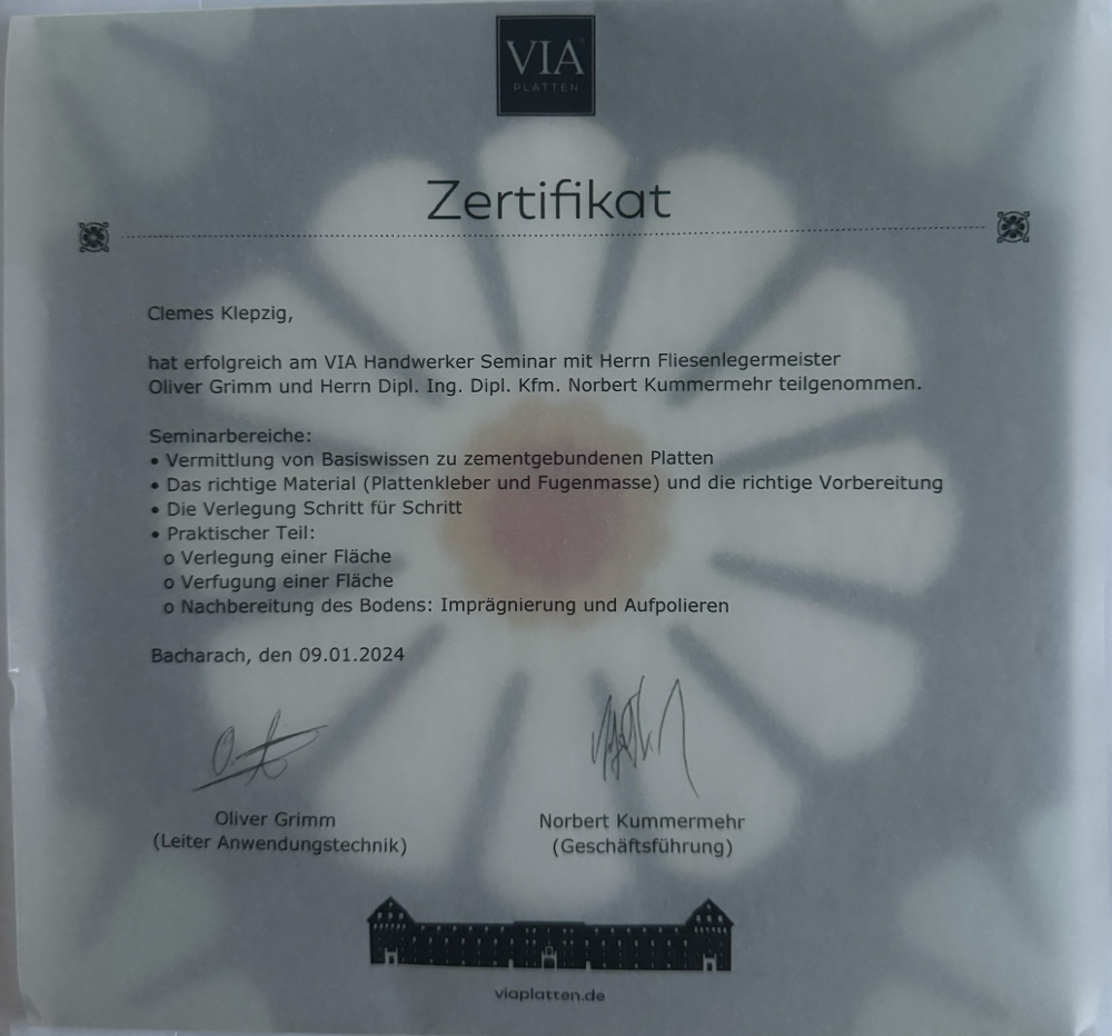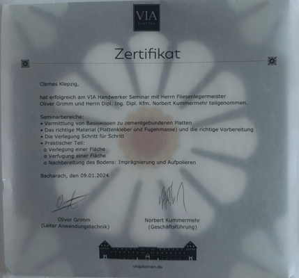 Wir sind Verlegepartner von VIA Zementplatten GmbH